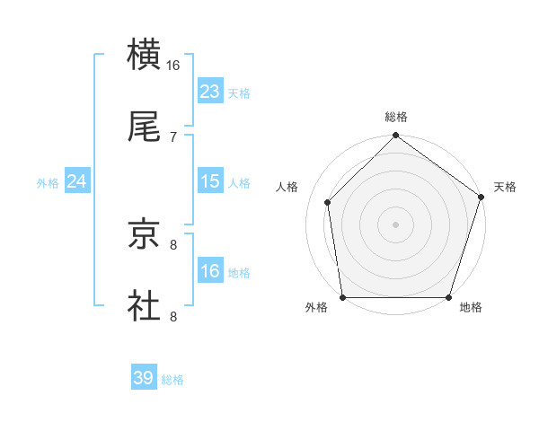 横尾 京社さんの総格は39画の5点!
