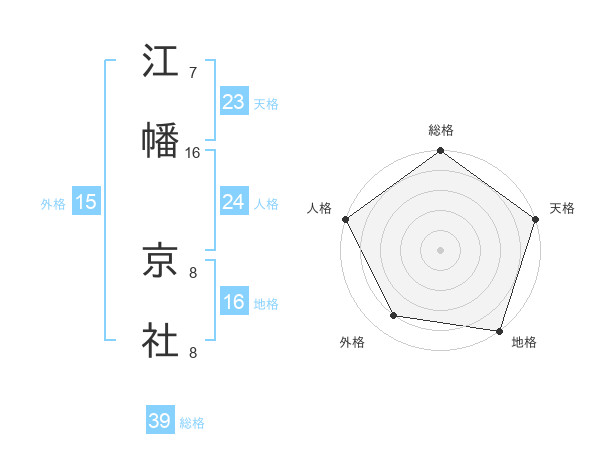 江幡 京社さんの総格は39画の5点!