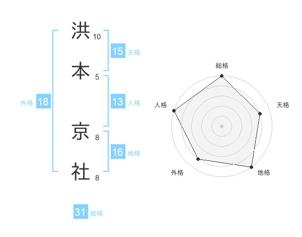 洪本 京社さんの総格は31画の5点!