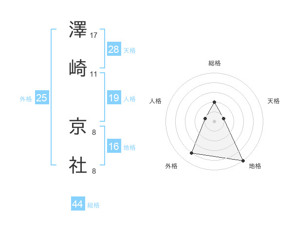 澤崎 京社さんを姓名の画数から五運を鑑定