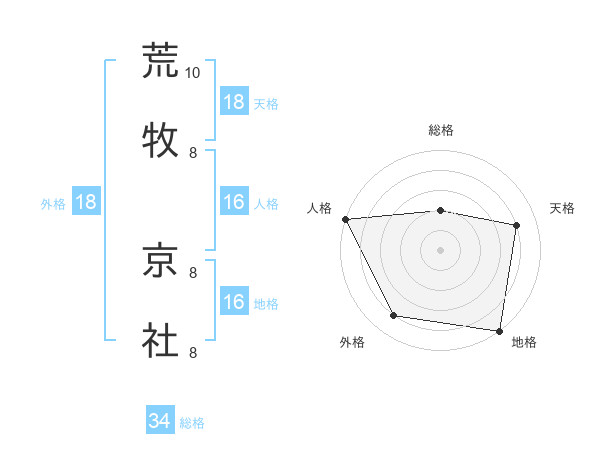 荒牧 京社さんの天格は18画の4点!