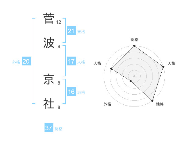 菅波 京社さんの総格は37画の5点!