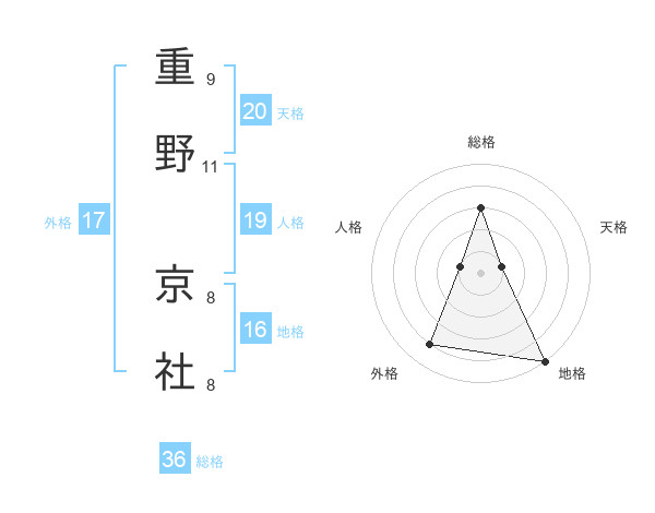 重野 京社さんの外格は17画の4点!
