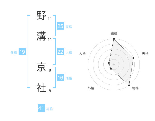 野溝 京社さんの総格は41画の5点!