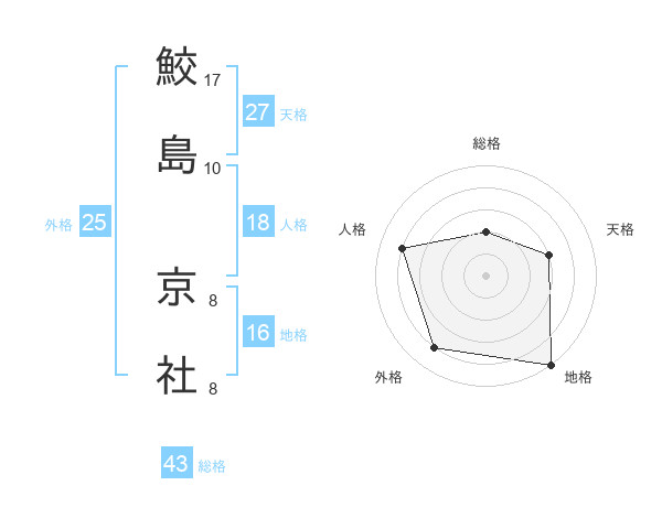 鮫島 京社さんを姓名の画数から五運を鑑定