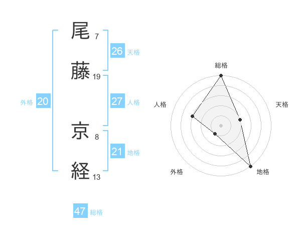 尾藤 京経さんを姓名の画数から五運を鑑定
