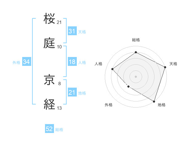 桜庭 京経さんを姓名の画数から五運を鑑定
