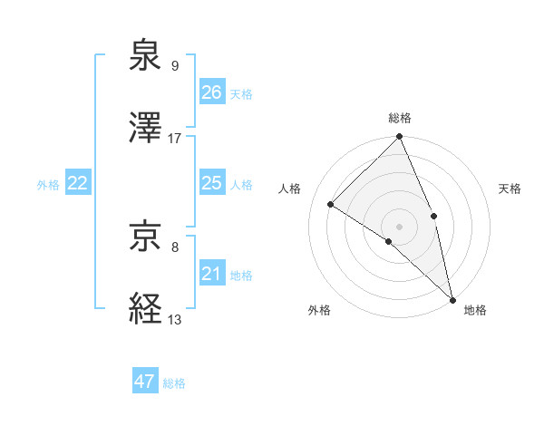 泉澤 京経さんを姓名の画数から五運を鑑定