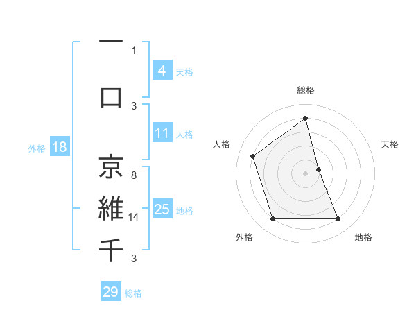 一口 京維千さんの総格は29画の4点!