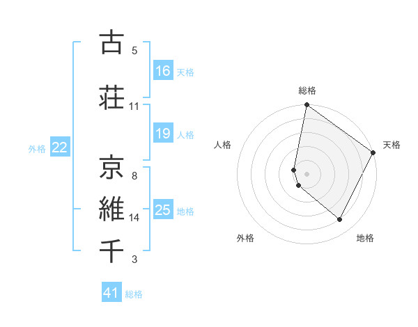 古荘 京維千さんを姓名の画数から五運を鑑定