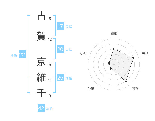 古賀 京維千さんの天格は17画の4点!
