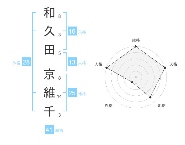 和久田 京維千さんの天格は16画の5点!