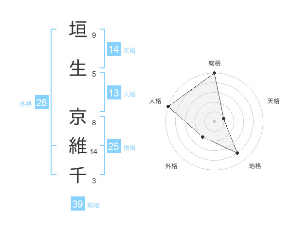 垣生 京維千さんを姓名の画数から五運を鑑定