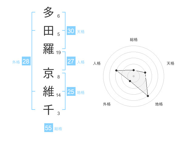 多田羅 京維千さんを姓名の画数から五運を鑑定