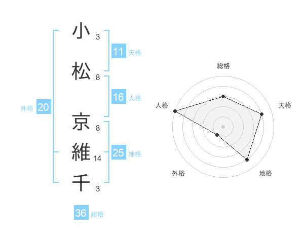 小松 京維千さんの天格は11画の4点!
