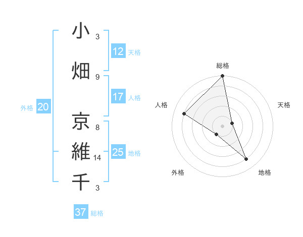 小畑 京維千さんを姓名の画数から五運を鑑定