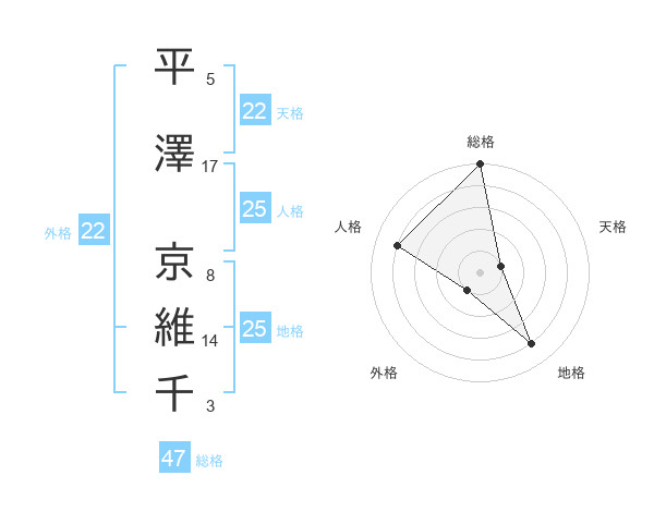 平澤 京維千さんを姓名の画数から五運を鑑定