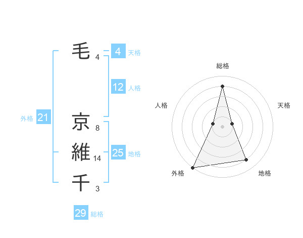 毛 京維千さんの総格は29画の4点!