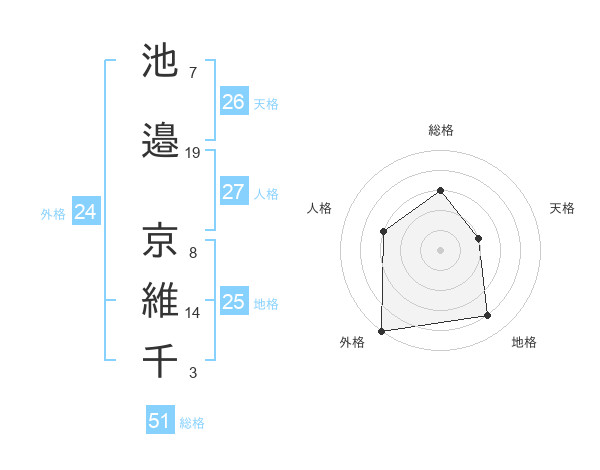 池邉 京維千さんの総格は51画の3点!