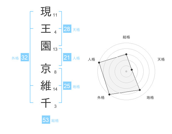 現王園 京維千さんを姓名の画数から五運を鑑定