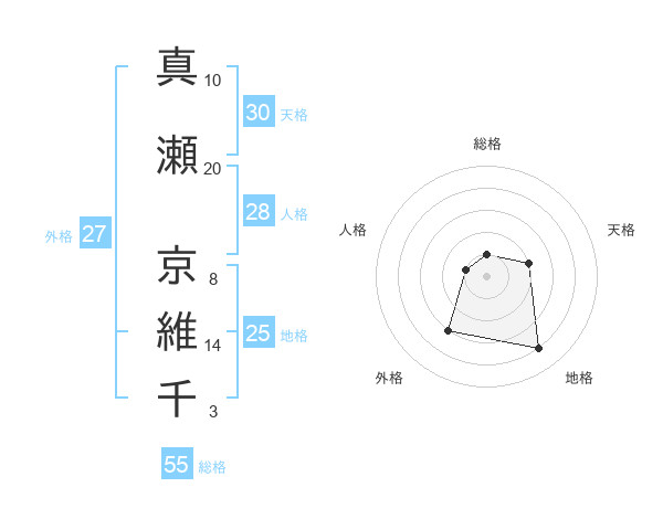 真瀬 京維千さんを姓名の画数から五運を鑑定