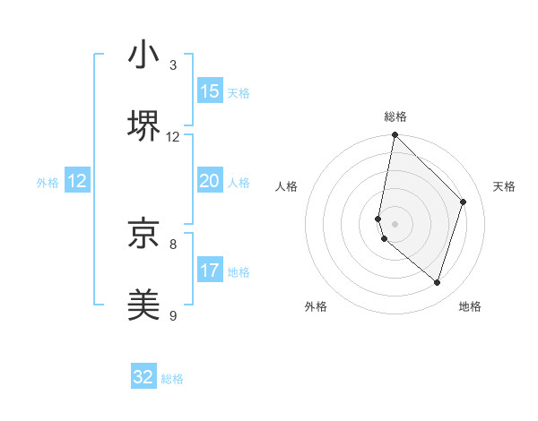 小堺 京美さんの総格は32画の5点!