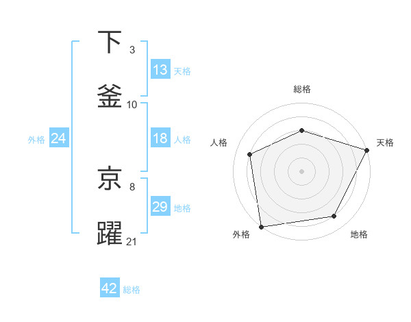 下釜 京躍さんの天格は13画の5点!