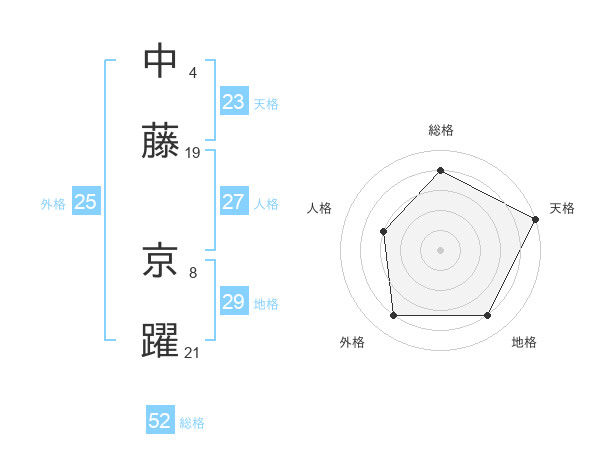 中藤 京躍さんの総格は52画の4点!