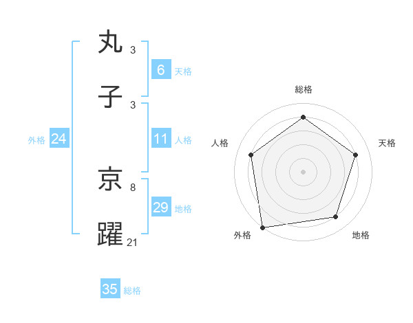 丸子 京躍さんを姓名の画数から五運を鑑定