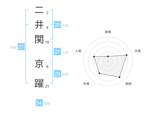 二井関 京躍さんを姓名の画数から五運を鑑定