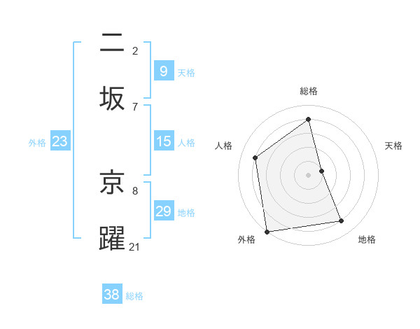 二坂 京躍さんの総格は38画の4点!