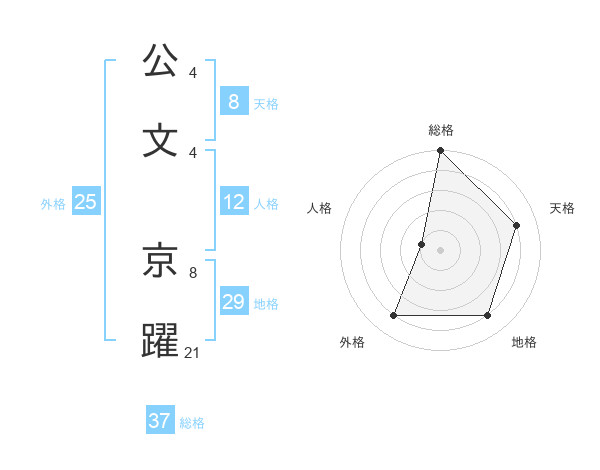 公文 京躍さんの総格は37画の5点!