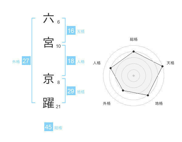 六宮 京躍さんの総格は45画の4点!