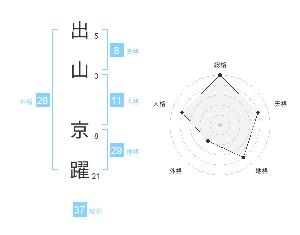 出山 京躍さんの総格は37画の5点!