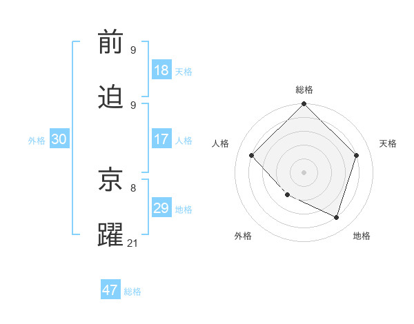前迫 京躍さんを姓名の画数から五運を鑑定