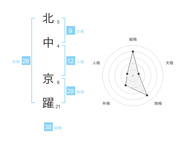 北中 京躍さんの総格は38画の4点!