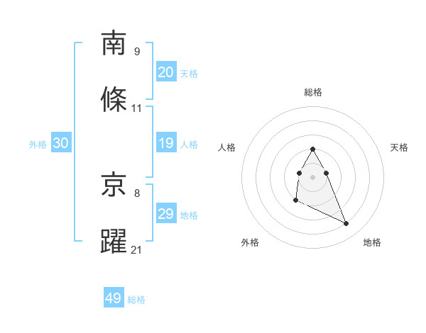南條 京躍さんの総格は49画の2点!