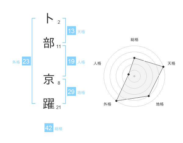卜部 京躍さんの天格は13画の5点!