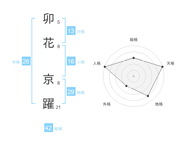 卯花 京躍さんを姓名の画数から五運を鑑定