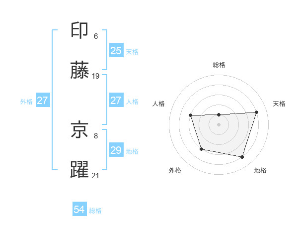 印藤 京躍さんの総格は54画の1点!