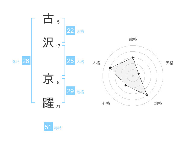 古沢 京躍さんを姓名の画数から五運を鑑定