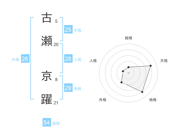 古瀬 京躍さんを姓名の画数から五運を鑑定