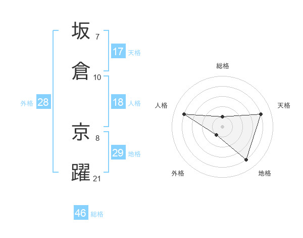 坂倉 京躍さんの総格は46画の1点!