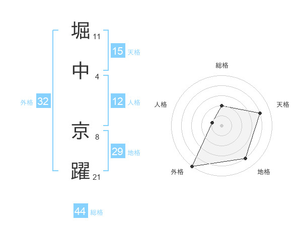 堀中 京躍さんの総格は44画の2点!