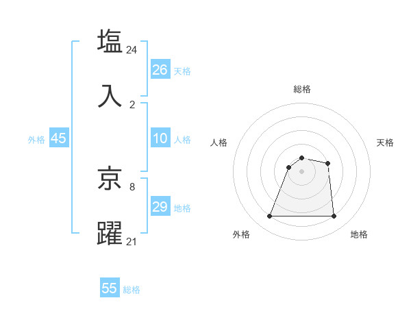 塩入 京躍さんの総格は55画の1点!