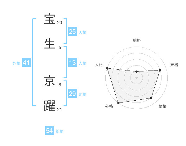 宝生 京躍さんの外格は41画の5点!
