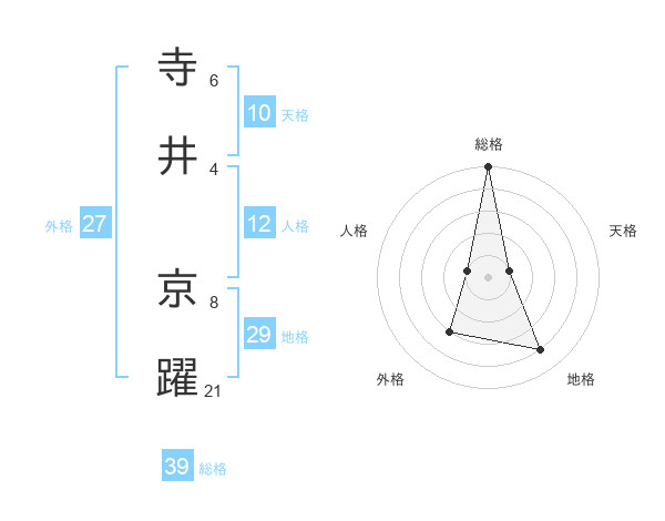 寺井 京躍さんを姓名の画数から五運を鑑定