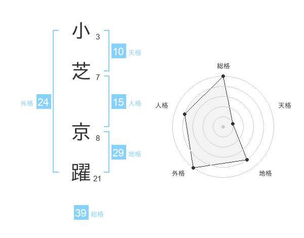 小芝 京躍さんの総格は39画の5点!