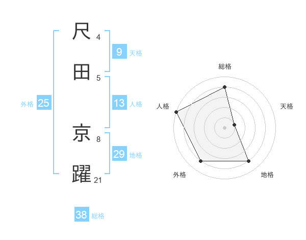 尺田 京躍さんの総格は38画の4点!