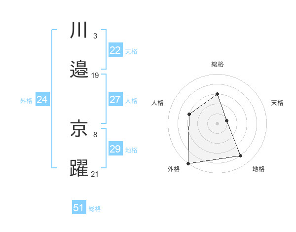 川邉 京躍さんの総格は51画の3点!